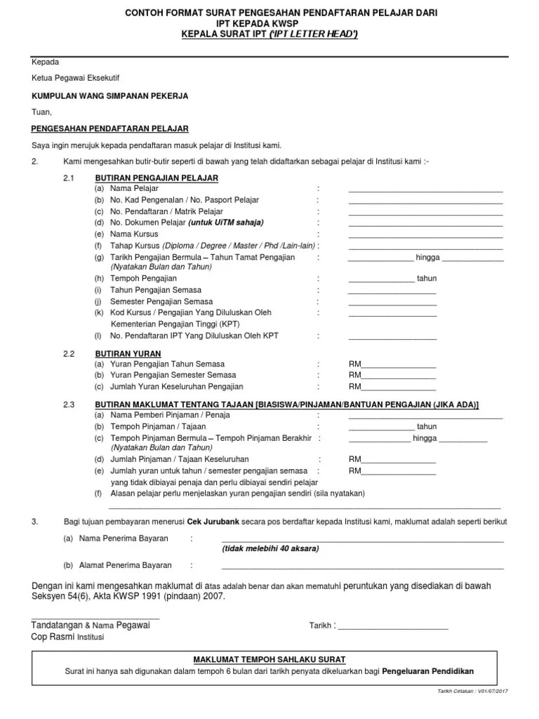 Here's a summary of about contoh surat surat pengesahan pelajar uitm ideal after simply adding syntax you could 1 piece of content into as much 100% . Easily fill out pdf blank, edit, and sign them. (f) tahap kursus (diploma / degree .